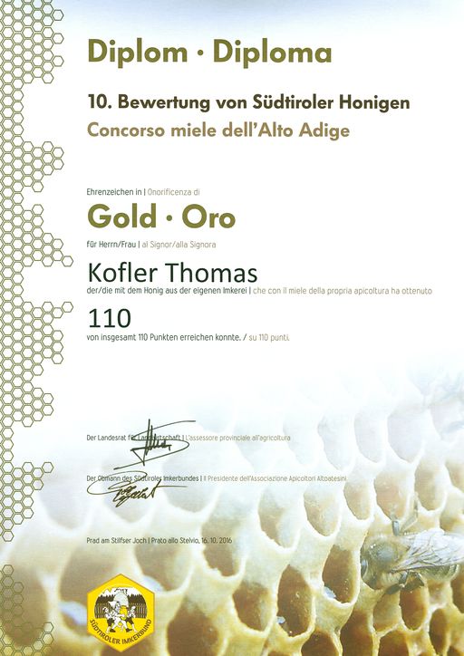 Wenn der Südtiroler Honig dann erntereif ist, wird er „abgeschleudert“, wobei der Reifegrad des Honigs besonders wichtig ist. Ein optimaler Reifegrad bedeutet, dass der Wassergehalt zwischen 15 und 18% liegt. Der Zeitpunkt für die Entnahme des Honigs und die weiteren Eingriffe durch den Imker müssen also wohlüberlegt sein. Ein Teil des Honigs wird den Völkern belassen, damit diese immer genügend Futter haben. Schon im Spätsommer entscheidet sich, ob die Bienenvölker gut überwintern.